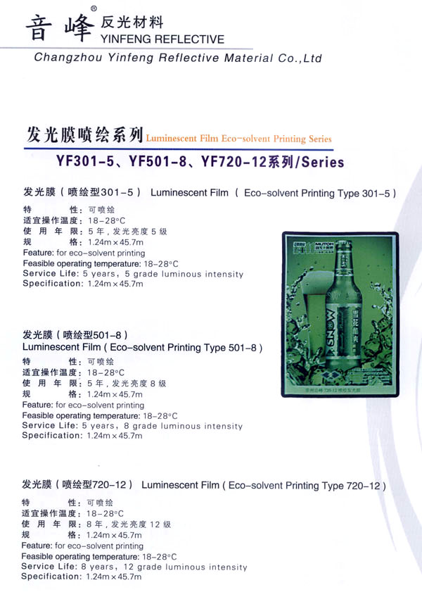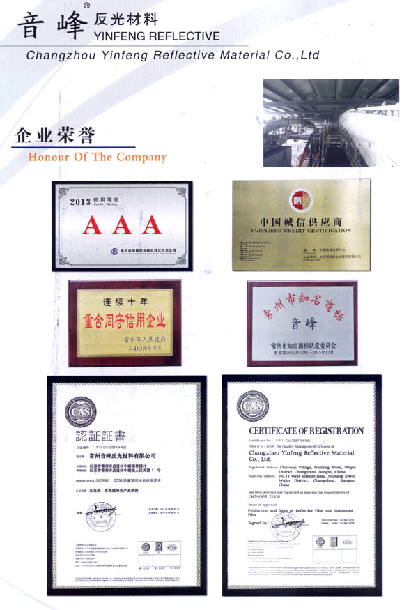 音峰集團是一個多種經(jīng)營的綜合性高科技股份公司,從事反光材料、交通安全設(shè)施、絲網(wǎng)印刷、揚聲器、紡織等產(chǎn)品的研制開發(fā)、生產(chǎn)銷售。公司自創(chuàng)立以來,堅持走科技發(fā)展的道路,以滿足客戶需求為公司宗旨,取得了令人矚目的經(jīng)濟效益和社會效益,使公司規(guī)模不斷擴大。 音峰反光材料有限公司是音峰集團下的一個新銳的子公司,主要從事系列反光材料及發(fā)光膜的研制和開發(fā)。公司擁有國內(nèi)最先進的生活殘設(shè)備,最專業(yè)的研制、開發(fā)人員,公司還投入了大量的資金,年產(chǎn)值達1.5億。 公司主生產(chǎn):廣告級反光膜、工程級反光膜、車牌級反光膜、高強級反光膜、廣告級反光雙色條、發(fā)光膜、噴繪反光膜、晶彩格、電信電力反光膜,鍍鋁膜等等..........根據(jù)國家指令法規(guī):反光材料的領(lǐng)域,如公路標(biāo)志、標(biāo)牌、標(biāo)線、礦山、鐵路等......... 反光膜廣泛應(yīng)用于各種廣告標(biāo)志牌,公路鐵路的導(dǎo)向牌、指示牌、地名牌、車牌,道路交通標(biāo)志,物業(yè)小區(qū)標(biāo)志,臨時施工標(biāo)志,廣告宣傳、安全防護、高等級公路的各種警示標(biāo)語,標(biāo)識牌等。 公司堅持以生產(chǎn)力標(biāo)準(zhǔn)衡量企業(yè)效益和員工業(yè)績,堅持“以人為本,提倡知人、容人、用人、培養(yǎng)人,使企業(yè)具有極強的凝聚力,在激勵的市場競爭中保持旺盛的生命力!笨萍急WC品質(zhì),服務(wù)完善產(chǎn)品“是我們永遠不變的信念。 隨著世界的發(fā)展,企業(yè)經(jīng)營進入了全球化時代,本著這一共識,企業(yè)憑借自身的技術(shù)優(yōu)勢,積極參加國際間合作與競爭,努力拓展國內(nèi)與國際市場,公司愿與國內(nèi)外各界朋友在更廣泛的領(lǐng)域攜手合作,共同發(fā)展,共創(chuàng)繁榮。