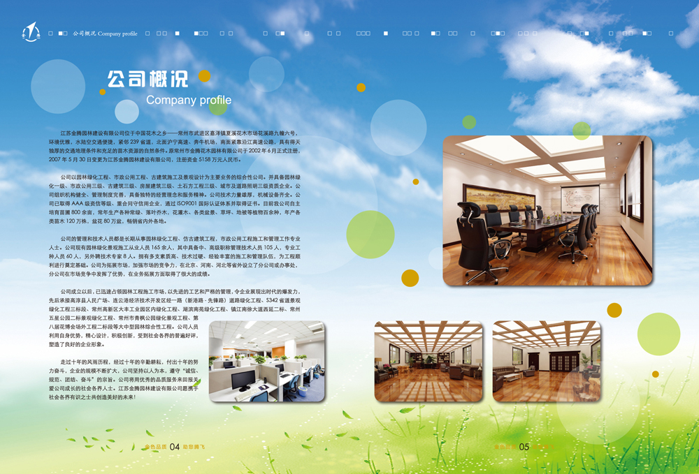 公司以園林綠化工程、市政公用工程、古建筑施工及景觀設(shè)計為主要業(yè)務(wù)的綜合性公司。并具備園林綠化一級、市政公用二級、鋼結(jié)構(gòu)三級、古建筑三級、房屋建筑工程施工總承包三級和城市及道路照明工程專業(yè)承包三級資質(zhì)企業(yè)。公司組織機構(gòu)健全、管理制度完善,具備獨特的經(jīng)營理念和服務(wù)精神。公司技術(shù)力量雄厚,機械設(shè)備齊全。公司已取得AAA級資信等級、重合同守信用企業(yè),通過ISO9001國際認證體系并取得證書。目前我公司自主培育苗圃1000余畝,常年生產(chǎn)各種常綠、落葉喬木,花灌木、各類盆景、草坪、地被等植物百余種,年產(chǎn)各類苗木250萬株,盆花130萬盆,暢銷省內(nèi)外各地。