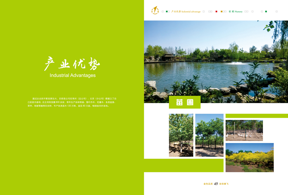 公司以園林綠化工程、市政公用工程、古建筑施工及景觀設(shè)計(jì)為主要業(yè)務(wù)的綜合性公司。并具備園林綠化一級(jí)、市政公用二級(jí)、鋼結(jié)構(gòu)三級(jí)、古建筑三級(jí)、房屋建筑工程施工總承包三級(jí)和城市及道路照明工程專業(yè)承包三級(jí)資質(zhì)企業(yè)。公司組織機(jī)構(gòu)健全、管理制度完善,具備獨(dú)特的經(jīng)營理念和服務(wù)精神。公司技術(shù)力量雄厚,機(jī)械設(shè)備齊全。公司已取得AAA級(jí)資信等級(jí)、重合同守信用企業(yè),通過ISO9001國際認(rèn)證體系并取得證書。目前我公司自主培育苗圃1000余畝,常年生產(chǎn)各種常綠、落葉喬木,花灌木、各類盆景、草坪、地被等植物百余種,年產(chǎn)各類苗木250萬株,盆花130萬盆,暢銷省內(nèi)外各地。