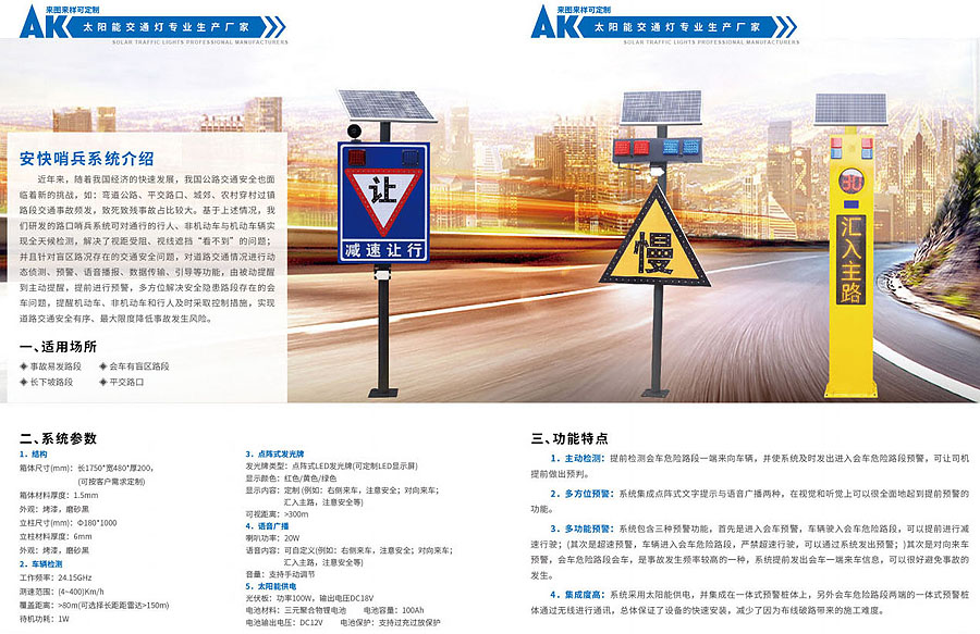 常州安快交通設(shè)施有限公司成立于2018年,位于江蘇省常州市鄒區(qū)鎮(zhèn)。是一家專業(yè)生產(chǎn)銷售交通信號(hào)電子產(chǎn)品廠家。主要產(chǎn)品有:太陽(yáng)能爆閃燈、回轉(zhuǎn)燈、雷達(dá)測(cè)試儀、黃慢燈警示燈、假警車、保通機(jī)器人、移動(dòng)紅綠燈、道路智能化預(yù)警系統(tǒng)的廠家。本公司真誠(chéng)的希望與客戶在臺(tái)作中加深了解、促進(jìn)友誼并期待與其建立長(zhǎng)遠(yuǎn)良好平等互利的臺(tái)作伙伴關(guān)系。我們竭誠(chéng)歡迎各界朋友來公司蒞臨指導(dǎo)、洽談業(yè)務(wù)井提出寶貴意見。