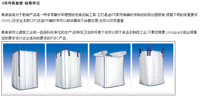 常州優(yōu)尼克包裝有限公司主要致力于柔性集裝袋、集裝箱內(nèi)襯袋、有紡?fù)凉げ技八芫幇b袋的生產(chǎn)與銷售。我們可以生產(chǎn)U型,四片型,圓筒、拉筋等多種設(shè)計(jì)款型的的集裝袋及特殊規(guī)格要求的集裝袋; 包括Type A, TypeB, TypeC, 耐高溫及耐低溫的袋子, 食品級(jí)的袋子. 我們的產(chǎn)品廣泛用于化工行業(yè)、食品行業(yè)、染料顏料行業(yè)、炭黑行業(yè)、采礦行業(yè)及建筑行業(yè)等許多行業(yè)領(lǐng)域中。