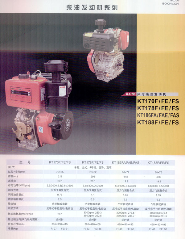 常州常柴集團(tuán)凱拓電動(dòng)機(jī)械有限公司是常柴集團(tuán)所屬,集自主研發(fā)設(shè)計(jì)及生產(chǎn)的出口型產(chǎn)業(yè)基地。 常柴集團(tuán)是一家擁有近一萬名在職員工的國有大型企業(yè),年均產(chǎn)值近三億美元,平均出口總額近八千萬美元,同時(shí)也是中國內(nèi)地五百強(qiáng)企業(yè)之一! 〕2窦瘓F(tuán)凱拓電動(dòng)機(jī)械有限公司的主要產(chǎn)品流水線基于日本YAMMAR型超級風(fēng)冷柴油發(fā)動(dòng)機(jī),以及其配套發(fā)電機(jī)組,水泵機(jī)組和數(shù)碼變頻發(fā)電機(jī),我司目前擁有常柴集團(tuán)及凱拓品牌的知名商標(biāo)使用權(quán),旗下所有分廠如機(jī)械加工廠、鑄造廠以及發(fā)動(dòng)機(jī)廠等生產(chǎn)基地都通過了ISO9001-2000質(zhì)量管理體系認(rèn)證。我司自主品牌凱拓柴油發(fā)電機(jī)組KT5000SE,KT5000LE,數(shù)碼變頻發(fā)電機(jī)KT1000Ti以及柴油發(fā)動(dòng)機(jī)186F均通過德國TUV公司的CE認(rèn)證,美洲EPA認(rèn)證,因此出口量很大,近年來公司產(chǎn)品已遠(yuǎn)銷美洲、歐洲、非洲以及東南亞國家和地區(qū)! ∫劳谐2窦瘓F(tuán)的領(lǐng)先技術(shù),強(qiáng)有力的管理體制,以及健全的產(chǎn)品質(zhì)量體系,我司通過不斷優(yōu)化自主設(shè)計(jì)研發(fā),完善管理機(jī)制,期望能夠以提供最優(yōu)質(zhì)的產(chǎn)品售后服務(wù)進(jìn)一步拓展國際市場! ”局皥F(tuán)結(jié)、合作、奮斗”的公司理念,我們希望著眼全球,與更多潛在的客戶開展合作交流,最終實(shí)現(xiàn)雙贏的戰(zhàn)略目標(biāo)。