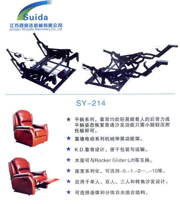 江蘇舒意達(dá)機(jī)械有限公司是一家集研發(fā)設(shè)計,生產(chǎn)制造及銷售的專業(yè)家具五金企業(yè)。公司成立于2006年,座落于風(fēng)景秀麗的江南常州,交通運輸?shù)锰飒毢,為海?nèi)外客商的來往交流,洽談和供貨提供了諸多便利,公司占地面積28000平方米,生產(chǎn)廠房面積18000平方米,獨立的辦公樓,擁有良好的工作環(huán)境。 我們的經(jīng)營思理念:堅持以人為本,科技為先,用先進(jìn)的設(shè)備,好的工藝流程制造一流的產(chǎn)品。 我們的口號:保證以優(yōu)秀的品質(zhì)服務(wù)于客人,我們的目標(biāo):研發(fā)更多舒適的產(chǎn)品,帶來生活的享受。 公司誠邀海內(nèi)外客商前來指導(dǎo)洽談,攜手共進(jìn),共造雙贏。