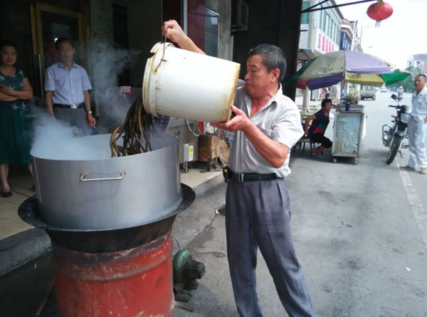 常州新北區(qū)孟河公陽小吃店從事鱔絲面23年,經(jīng)營面積100平方米,黃鱔全是野生,面湯采用高湯制作(鱔魚湯),下面的時候先用開水把黃鱔燙熟,然后用竹刀批下二條黃鱔肉,除去骨頭肚腸,切成段后入油鍋里炸酥,再用白湯烹制成為面澆頭。而面湯是用鱔魚骨頭、豬骨等用大鍋猛火煮上三、四個鐘頭,成為一鍋濃濃的白湯,再進行調(diào)味,吃到嘴里全身舒坦。