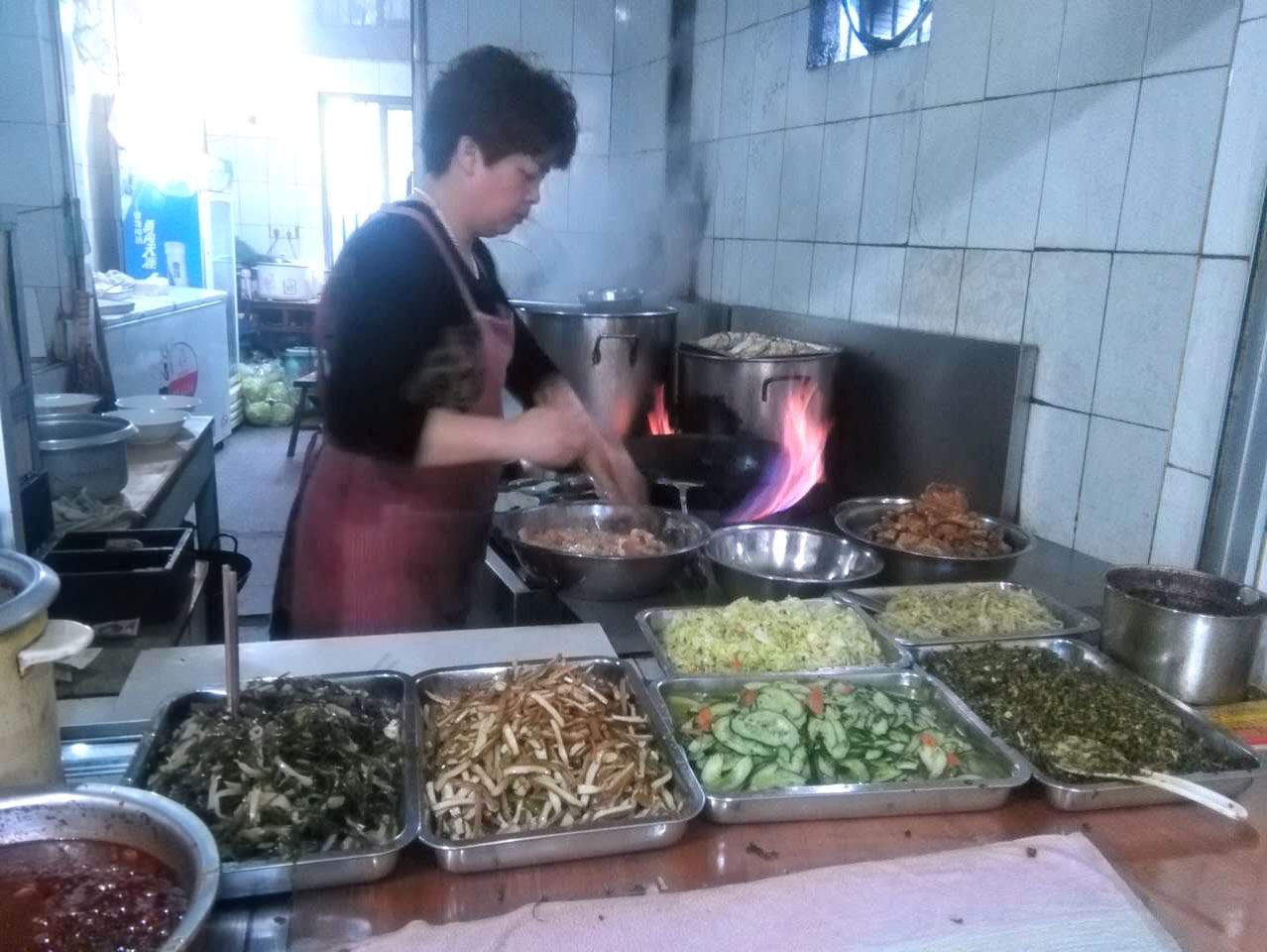 魁元面館,橫山橋江南路,沿街的店鋪。老板娘徐文霞,從公婆手里接過這個店面已有20多年。最具特色的菜品是肉圓跟大排。每天凌晨3點就要起來做準(zhǔn)備,菜都是現(xiàn)燒現(xiàn)賣。 特色小菜: 肉圓:有人特意遠道而來打包走 大排面:每天能賣出100來塊大排 大腸 雞蛋:每天煎的雞蛋就差不多300來個 小餛飩、大餛飩 限時供應(yīng): 咸鴨蛋、肉粽、蛋黃粽:每天都要包,放爐子燒,在端午前后供應(yīng),很好吃。每天都有人打包幾個咸鴨蛋或者粽子拿回家,送人 油酥餅(圖3-4)、糍團餅(圖5-6)、韭菜餅(圖7-8) 油酥餅每天晚上做,涼了更好吃,更酥更脆,里面都是很香的黑芝麻;糍團餅,每天中午擺攤熱了煎鍋開始煎,糯米做成,用菜籽油煎至金黃,餡兒是黑芝麻瓜子仁;韭菜餅是最受歡迎的,每天都有好多人排隊來買。供應(yīng)時間:每年的4月份到11月份 下午1點到5點半。