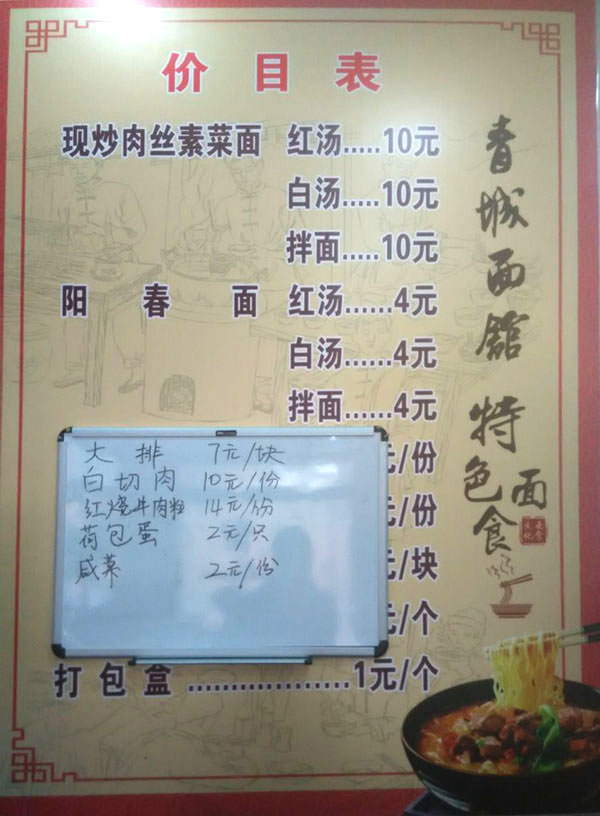 武進(jìn)區(qū)青城面館經(jīng)營(yíng)面積280平方米左右,主要特色是現(xiàn)炒肉絲,素菜蓋澆面,面館創(chuàng)始人今年63歲的王蘭珍,她對(duì)美食有著高于常人的悟性。她開過(guò)饅頭店,開過(guò)小飯館,承包過(guò)食堂,燒菜、取料樣樣在行,吃過(guò)的人常常贊不絕口。 20世紀(jì)初,在跟德興面館的老師傅學(xué)了做面手藝后,王蘭珍萌生了開一家面館的想法,除了可以養(yǎng)家糊口,最重要的是想讓更多人嘗嘗自己的手藝。于是,她在自己的住處擺起了幾張桌椅,面館就算正式營(yíng)業(yè)了。因?yàn)榧易∏喑菢,王蘭珍干脆取名“青城面館”。 “從早上5點(diǎn)多開始營(yíng)業(yè),到下午1點(diǎn)多打烊,一天至少要賣掉300多碗面,用掉近160斤面粉!睘楹吻喑敲骛^的面條如此受歡迎,兒媳婦陸偉紅說(shuō)秘訣在于湯頭和澆頭。湯頭分白湯和紅湯,白湯是由10斤豬骨頭熬制而成,湯色清澈而味道濃郁;紅湯以骨頭湯作底湯,加入茴香、甘草、草果等20多種中草藥,以及糖、醬油等調(diào)味品,鮮而不腥,散發(fā)出陣陣香味。 和一般面館事先燒制好澆頭,放在盆里供客人選擇不同,青城面館的澆頭都是一份份現(xiàn)炒的,特別講究食材的新鮮。就拿暢銷的肉絲蔬菜紅湯面來(lái)說(shuō),要先起猛火,把肉絲、木耳、蘑菇、青菜等食材放一起煸炒至香,然后澆在撈起的面條上。一碗面出來(lái),現(xiàn)炒的澆頭與面條融合,味道香郁至極。 遙觀人的早晨,醒得有些早。對(duì)很多遙觀人來(lái)說(shuō),美好的一天是從青城面館開始的。那一碗碗現(xiàn)炒的蓋澆面,筋道爽滑、醬香味濃,溫存著他們的胃與記憶,帶來(lái)刻進(jìn)骨子里的家鄉(xiāng)味道。