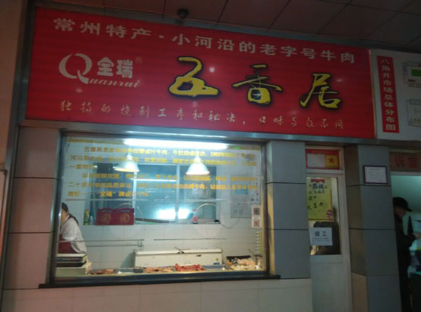 天寧區(qū)五香居牛肉店經(jīng)營鹵汁牛肉、牛肚的鹵菜店,1983年創(chuàng)始于常州小河沿菜市場,經(jīng)長期實(shí)踐,積累經(jīng)營、摸索出鹵汁牛肉的獨(dú)特方法,已自成一家特色。 采用新鮮貨源,精選加工、原汁原味,以肉質(zhì)細(xì)膩、鮮嫩,口味獨(dú)特成為二十多年來品質(zhì)的保證,鑄就了五香居店的品牌牛肉,以,創(chuàng)始人名字命名的商標(biāo)——“全瑞”牌鹵汁牛肉。