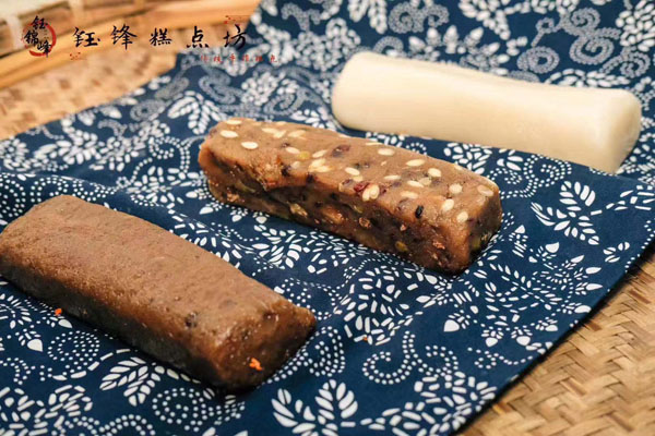 腳踏糕本名“年糕”,按常州周邊地區(qū)的風(fēng)俗習(xí)慣,在春季前夕,各家各戶都要蒸年糕,吃年糕!案狻敝C音“高”,過年吃年糕被賜予“年年高”,一年高一年,鋒吉祥之意,表達(dá)這人們對(duì)未來美好生活的憧憬和良好的祝愿。今天小編要帶大家的就是一家至今保持著傳統(tǒng)手工制作的鈺鋒糕點(diǎn)坊。 鈺鋒糕點(diǎn)坊位于常州鄭陸鎮(zhèn)三皇廟范家莊,一個(gè)比較偏僻的村莊,雖然這家作坊不大,但香糯絲滑,軟糯適中,韌勁十足的腳踏糕吸引了無數(shù)的食客。制作一條腳踏糕要從淘米,浸泡,碾粉,鋪粉,一層一層的鋪下去,需要無數(shù)道制作工序,這些都是店主孫煥公公老周,憑著幾十年的經(jīng)驗(yàn),加上店主孫煥從不馬虎的決心! 這“腳踏”也并非赤腳上陣,而是把蒸好的糕倒入早以準(zhǔn)備好的框子里,用布包裹好,上面再用薄膜包好,再蓋上布,再換上專門腳踏的布鞋,踩的時(shí)候要?jiǎng)蚍Q,左右腳要配合好,不然糕會(huì)高高低低,不平整,最后再拿蠟燭線拆成一條小長條,再拿帶包裝好,如此又香又糯的腳踏糕就大功告成了。 店主孫煥為了讓更多的人認(rèn)識(shí)和了解常州腳踏糕的傳統(tǒng)文化和美食,她在傳統(tǒng)工藝中增加了適合現(xiàn)代文化的多種口味,她在糕里加入南瓜,紫薯,老紅糖,大麥汁,血糯米,核桃,葡萄干,紅棗等食材,做出五顏六色,純天然的口味,深受食客們的喜愛,不管是送人還是自己吃都非常新穎。 (重陽糕)重陽糕的由來,九九重陽,九是陽數(shù),也是陽數(shù)中最大的數(shù),九月初九,兩九相重,為之重陽,古人有重陽登高的習(xí)俗。高于糕同意,寓意人活九十九,生活步步高,秋景勝春光,夕陽無限好。夕陽紅成了老人對(duì)自己美好的祝愿和希望,所以從某種意義上來講它“祝壽糕”“長壽糕”重陽糕在常州地區(qū)是家喻戶曉的,下面小編帶你去一家至今保持傳統(tǒng)手工制作的鈺鋒糕點(diǎn)坊看一下吧。鈺鋒糕點(diǎn)坊位于常州市天寧區(qū)鄭陸鎮(zhèn)三皇廟范家莊,偏僻的小村莊,雖然有點(diǎn)偏僻,但是每到重陽節(jié)到來,每天還是有很多食客來訂購和購買店主孫煥做的多種口味的重陽糕。要想做出松軟香糯的重陽糕,原材料和糯米和梗米的配比也很重要,調(diào)整好比例開始淘米,浸泡,釓粉,放入糖攪拌,篩粉,糕底部放上荷葉,中間的餡心都是孫煥自己熬制,口感,香糯松軟,店主孫煥為了吸引更多現(xiàn)代年輕人,她在粉里加入南瓜,紫薯,紅糖,血糯等,色彩搭配很出跳,吸引來了很多食客,孫煥2019年開始自愿捐贈(zèng)重陽糕給敬老院,她說這樣的公益活動(dòng)自己很喜歡,雖然金額不大,缺表達(dá)了她的一份心意,并稱這樣的公益活動(dòng)她每年都會(huì)做。