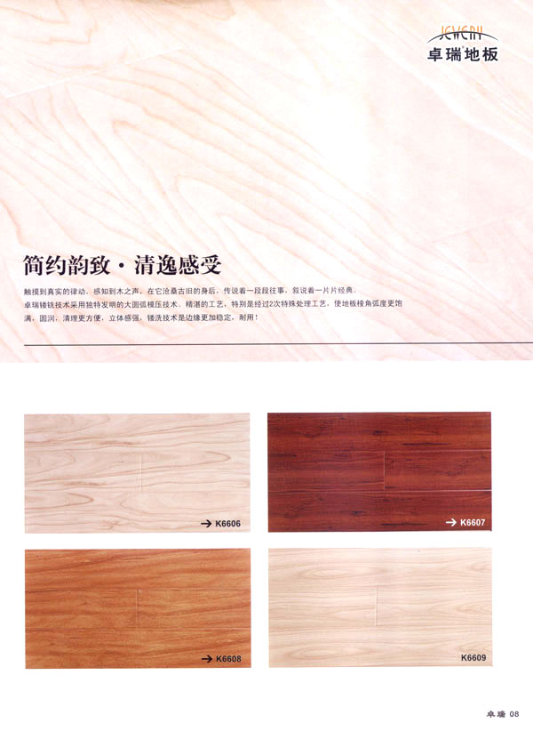 常州市卓瑞裝飾材料有限公司創(chuàng)建于一九九二年,公司位于中國江蘇省常州市,北靠滬寧高速公路,南臨滬寧鐵路,東臨無錫,環(huán)境優(yōu)越。 公司占地35畝,生產廠房2萬多平方米,擁有多條先進的復合地板生產線。公司引進先進設備和技術研制而成的高耐磨環(huán)保復合地板。一流的生產設備,加上嚴格的操作流程,精細的加工工藝,嫻熟專業(yè)的技術,是泰格龍地板脫穎而出,泰格龍以大眾健康為己任,務求每一塊泰格龍地板都是健康產品,都是科技、自然、藝術、生活的精彩結合。 產品通過ISO9001國際質量體系認證和ISO14001國際環(huán)境質量體系認證。目前產品主要出口美國、英國、德國、澳大利亞、馬來西亞、烏克蘭、菲律賓、加拿大、智利、土耳其等十多個國家和地區(qū)。 未來,本公司上下將一如既往,堅持“質量第一,顧客之上”的原則,以高質量的產品,優(yōu)良的服務,歡迎各界朋友蒞臨指導,共同開拓美好前景!