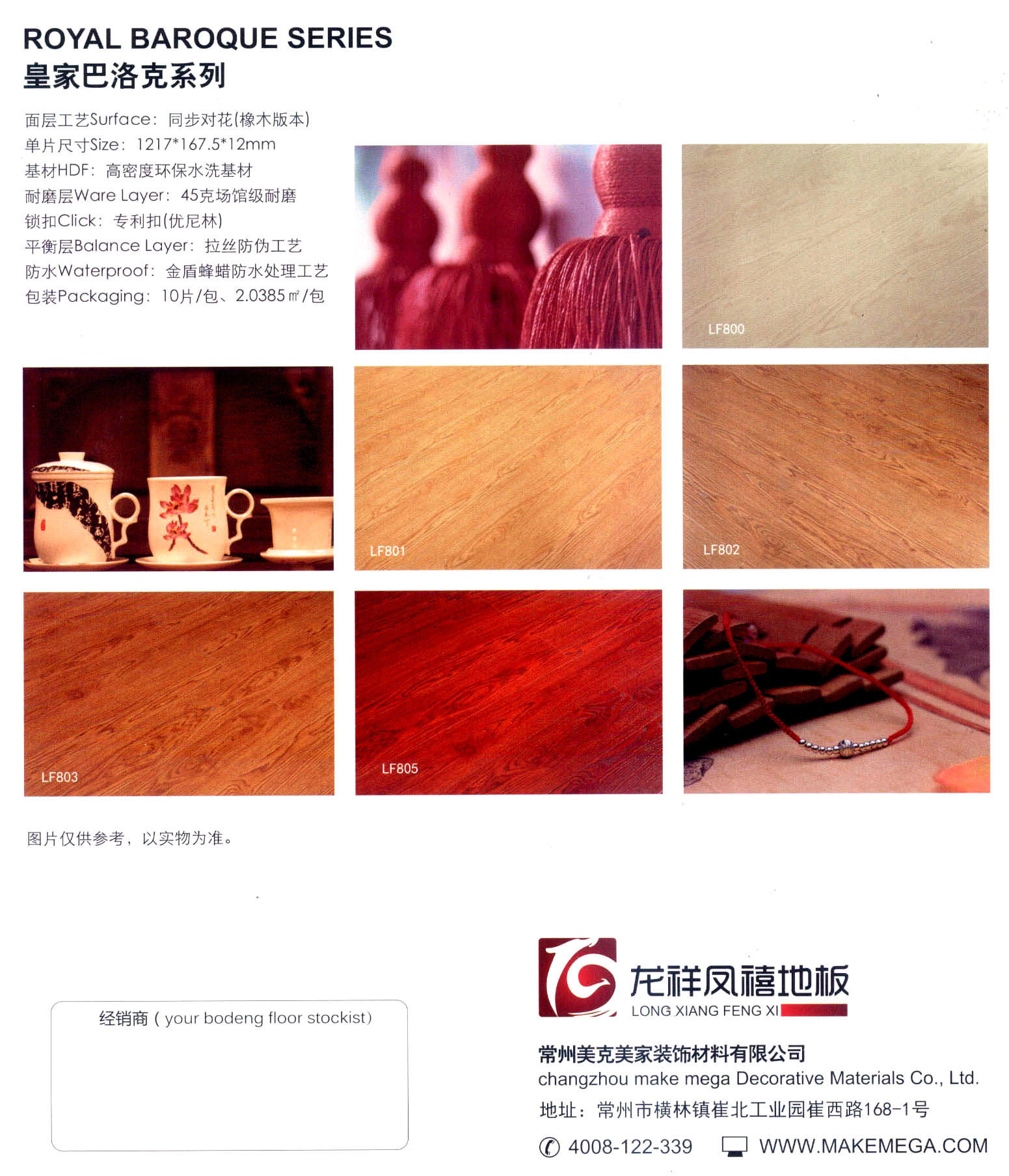 常州美克美家裝飾材料有限公司是專業(yè)制造和銷售中高端地板的知名企業(yè),也是中國強(qiáng)化木地板之都龍頭企業(yè)之一。位于我國長(zhǎng)三角城市經(jīng)濟(jì)最發(fā)達(dá)地區(qū)常州市。公司持有商標(biāo) “龍祥鳳禧®” , “曼寧頓®”和“MAKEMEGA”® 三大品牌。 公司擁有國內(nèi)外高科技地板生產(chǎn)技術(shù), 2011年投入了800萬元進(jìn)行技術(shù)改造,引進(jìn)代表世界最高先進(jìn)水平的德國威力(WEINIG)四面刨開槽生產(chǎn)線及德國藍(lán)幟(LEITZ)金剛石刀具,并攜手夏特.IP.大亞.羅賓等國際知名公司。年產(chǎn)量將達(dá)到600萬平方米。產(chǎn)品有意大利高級(jí)名師設(shè)計(jì), 分為簡(jiǎn)約中國式風(fēng)格,現(xiàn)代風(fēng)格,簡(jiǎn)歐風(fēng)格,復(fù)古風(fēng)格等系列,從而確保了地板的款式新穎,質(zhì)量過硬,健康又環(huán)保。公司現(xiàn)已通過ISO9001質(zhì)量管理體系認(rèn)證,ISO14001環(huán)境管理體系認(rèn)證等多部門的認(rèn)可和獲獎(jiǎng)。目前產(chǎn)品已銷售到全國各大建材超市等多家大型連鎖店,并為國內(nèi)某幾家著名地板品牌承擔(dān)OEM(貼牌加工)。公司已在全國設(shè)立幾十家專賣店,已有20多萬㎡的大型工程經(jīng)驗(yàn), 例如:中國海軍療養(yǎng)院, 上海復(fù)旦大學(xué)科研樓, 浙江電視臺(tái)(部分), 深圳龍崗體育中心,北京國家汽車質(zhì)量監(jiān)督檢驗(yàn)中心大樓,等大型工程。 常州美克美家裝飾材料有限公司掌握世界領(lǐng)先科技, 立足中國, 傲視亞洲, 面向全球, 在公司董事長(zhǎng)的戰(zhàn)略指導(dǎo)下,實(shí)施品牌戰(zhàn)略,全球化戰(zhàn)略。 常州美克美家裝飾材料有限公司時(shí)刻挑戰(zhàn)自我,挑戰(zhàn)未來,為創(chuàng)造出美譽(yù)全球的產(chǎn)品,滿意百分百的服務(wù),樹立高端品牌形象,全力打造地板第一奢侈品牌。