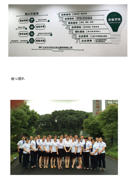 江蘇天天欣業(yè)物業(yè)服務有限公司成立于2008年9月,注冊資金1000萬元,是擁有獨立法人資格國家二級物業(yè)管理資質,是從事物業(yè)管理服務的專業(yè)化公司,中國物業(yè)管理協會會員單位。 目前,公司在常州在管包括天豪園區(qū)(主要為武進建設局下屬單位辦公)武進區(qū)建設局、武進交通運輸局、維綠園區(qū)(綠建委園區(qū))、武進智慧經濟創(chuàng)新平臺(武進經濟開發(fā)區(qū)園區(qū))、光大銀行武進支行、騰創(chuàng)工業(yè)園區(qū)、武進人民醫(yī)院、武進醫(yī)院南院、武進中醫(yī)醫(yī)院、武進區(qū)南夏墅街道衛(wèi)生院、德禾豪景苑、長河花園、聚湖雅苑等中高檔物業(yè)項目,管理面積近150余萬平方米。 公司兼承 “挑戰(zhàn)、責任、態(tài)度、團隊、創(chuàng)新、執(zhí)行、拼搏”的服務文化理念,并拓展出“精心管理、周到服務”的服務宗旨,以“挑戰(zhàn)、責任、態(tài)度、團隊、創(chuàng)新、執(zhí)行、拼搏”的工作態(tài)度,致力于提高公司的整體服務水平。 公司于2015年年初成立江蘇地區(qū)唯一一家專業(yè)物業(yè)管理培訓學校,江蘇地區(qū)大學教授、政府分管物業(yè)的領導都是培訓學校的老師,影響力與日俱增,通過開展培訓,有效的提升了我在管項目的品質。 江蘇天天欣業(yè)物業(yè)將以更超前的服務理念,先進的管理手段,依靠公司充滿挑戰(zhàn)激情的團隊,沿著規(guī)范化、專業(yè)化、規(guī);牡缆房焖侔l(fā)展,保證工作目標的實現,創(chuàng)立“天天欣業(yè)”物業(yè)管理優(yōu)秀品牌。