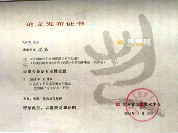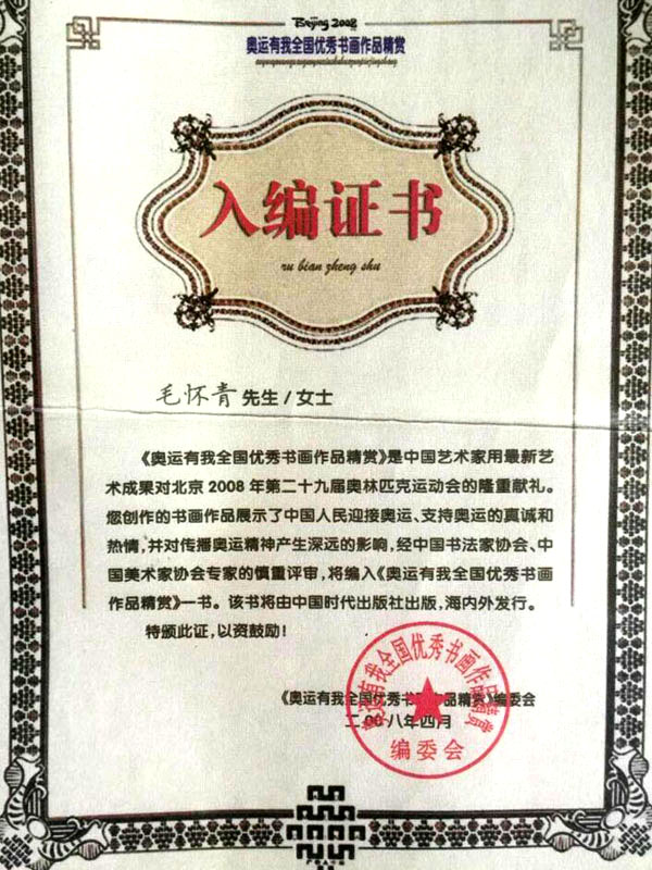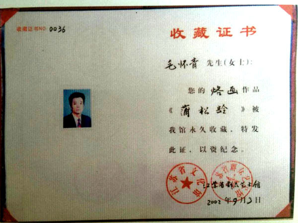 毛懷青,江蘇常州市武進(jìn)人。 中國(guó)工藝美術(shù)學(xué)會(huì)會(huì)員,常州市中國(guó)烙畫研究會(huì)副會(huì)長(zhǎng),常州市文博鑒賞協(xié)會(huì)理事,非物質(zhì)文化遺產(chǎn)烙畫傳承人。高級(jí)工藝美術(shù)師。 年輕時(shí)學(xué)習(xí)國(guó)畫、油畫中年蔓現(xiàn)掌州咯畫源遠(yuǎn)流長(zhǎng)、歷史悠久,有著其它美術(shù)門類不具備的藝術(shù)風(fēng)格與特色?芍^是工藝美術(shù)中的一朵十分亮麗的藝術(shù)奇葩,是我民族先人給我們留下的一份不可多得十分珍貴的一份文化遺產(chǎn)。為弘揚(yáng)與發(fā)展這份優(yōu)秀文化遺產(chǎn),我從此下定決心研究烙畫,愿付出一份力量為振興烙畫事業(yè)做出貢獻(xiàn)。至今已潛心研究幾十年,取得了可喜的成績(jī),被業(yè)界公認(rèn),社會(huì)關(guān)注與認(rèn)可。有“江南烙畫第一筆”之美譽(yù)。 近年來(lái),創(chuàng)作的烙畫作品分別獲得過全國(guó)、省市級(jí)的金、銀、銅獎(jiǎng)多次。中央電視臺(tái)曾兩次播放過本人的烙畫作品,江蘇電視臺(tái)、常州電視臺(tái)也曾多次播放過本人的作品與烙畫藝術(shù)生涯,揚(yáng)子晚報(bào)、常州日?qǐng)?bào)、常州晚報(bào)也曾多次報(bào)導(dǎo)過本人的烙畫作品,出版物有三種版本都能查閱到介紹本的烙畫從藝生涯與藝術(shù)業(yè)績(jī)。