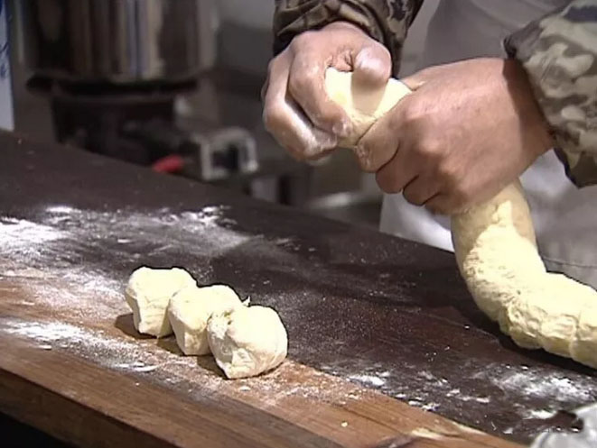 武進(jìn)區(qū)前黃韓記點(diǎn)心坊從事各式點(diǎn)心制作已有兩代人,特色是雞蛋油條,特色大麻糕,小籠包及各種饅頭,大麻糕又酥又松。 天光大亮,前黃寨橋農(nóng)貿(mào)市場(chǎng)已是人來(lái)人往,熱鬧非凡。 靠近市場(chǎng)的一排店面房,聞著隱約飄出的芝麻香,記者找到了坐落其中的韓記點(diǎn)心坊。 油條在鍋內(nèi)滋滋翻滾、各種口味的麻糕在柜臺(tái)里依次擺開(kāi)、包子隱藏在散著熱氣的蒸鍋內(nèi)……沉寂一個(gè)晚上的胃,頓時(shí)有些不安于寂寞。 韓記大油條: 飯店、麻辣燙店點(diǎn)名要它 60斤面粉,大約400根油條,這是韓記點(diǎn)心坊每天要賣(mài)掉的量。 將預(yù)先調(diào)制好的面團(tuán)鋪開(kāi),切成均勻的長(zhǎng)條,每?jī)蓷l上下疊好,用小竹板中間一壓、拎起兩頭一拉,放進(jìn)油鍋,滿鍋的油就開(kāi)始沸騰起來(lái)。 老板韓效慶做起油條來(lái)一氣呵成,他的油條會(huì)用到低筋、中筋、高筋三種面粉,根據(jù)季節(jié)不同,配比也不同,再加雞蛋、泡打粉發(fā)面,炸好后吃起來(lái)特別香脆。 “附近市場(chǎng)飯店、麻辣燙店用的油條都是我這里的,有些食客點(diǎn)名要吃我們店里的油條!表n效慶自豪地介紹說(shuō),他做點(diǎn)心的手藝是從父親那里學(xué)來(lái)的。在父親手下學(xué)了7年后,他先后前往常州迎桂饅頭店、興隆園美食城、常州麻糕店等地打工,最終形成了自己的點(diǎn)心配方。 兩年前,韓效慶回到家鄉(xiāng),在農(nóng)貿(mào)市場(chǎng)租店面開(kāi)了點(diǎn)心坊,這里也成了市場(chǎng)上最熱鬧的一家店鋪。 韓記大麻糕: 冷著吃也很酥脆 向外地人介紹常州地道美食,大麻糕是絕對(duì)繞不過(guò)的。一家好的麻糕店,一定要具備以下特點(diǎn):清晨排長(zhǎng)隊(duì);麻糕被帶往外地甚至海外;死忠粉甚多。而這些特點(diǎn),韓記大麻糕都具備。 要問(wèn)韓記大麻糕與其他麻糕有什么不同,韓效慶還真說(shuō)出了好幾個(gè)區(qū)別。例如,很多傳統(tǒng)麻糕使用烤桶,烤桶內(nèi)用的是煤,而韓記用的是大烤箱。再比如,一些外地朋友吃到的麻糕“干乎乎、木噱噱”,“這是因?yàn)樗麄冑I(mǎi)到的麻糕采取了普通的發(fā)面方式,再放進(jìn)爐子或烤箱一烤,水分蒸發(fā)了,肯定硬!表n效慶經(jīng)過(guò)多次嘗試,用麥芽糖發(fā)面,麥芽糖具有保濕性,使水分不易蒸發(fā),對(duì)麻糕的保濕與品質(zhì)的維持有較好的效果,這樣做出來(lái)的麻糕即便冷了也依舊酥脆。甜味的韓記大麻糕也不使用白糖,而是采用果糖,麻糕冷后也不會(huì)結(jié)塊,保持了更好的口感。 在韓記,大麻糕做好后,表面的芝麻也不是撒上去的,而是印上去的。芝麻經(jīng)烘烤之后顆粒飽滿,呈象牙色,使大麻糕的香、脆得到充分體現(xiàn)。 韓記大肉包:糅合豆瓣醬的創(chuàng)新美味 下粉、摻水、攪拌、揉搓……棉絮狀的面粉像被施了魔法,不一會(huì)兒就變成了一個(gè)白凈光滑的面團(tuán)。 韓效慶將面團(tuán)放置在一旁,待它慢慢餳著,轉(zhuǎn)手拿出已經(jīng)拌好的餡料,“你能聞出什么味道嗎?”在確定記者猜不出后,他開(kāi)始娓娓道來(lái)——豬肉都是后腿肉,餡料里不放鹽、味精,全靠豆瓣醬和糟方提味。 待面團(tuán)和餡料都準(zhǔn)備就位,只見(jiàn)韓效慶一手拿著切好的面團(tuán),一手握著搟面棍,飛速地邊搟邊旋轉(zhuǎn),一張薄厚適中的面皮眨眼就制作完成了。他將搟好的面皮放于左手手心,舀起一勺肉餡置于面皮中央,熟練地將面皮捏出十多道褶皺,輕輕一扭,一個(gè)肉包躍然眼前。 待包子蒸好,食客們紛紛起身,等著帶走屬于自己的那一份美味。記者也忍不住拿起一個(gè),咬上一口,咸鮮的美味、撲鼻的豆瓣香,那種特別的味道只有品嘗過(guò)的人才能體會(huì)。 食客點(diǎn)評(píng):食客孫桂洪:我是寨橋人,住在湖塘好幾年了,可每隔一段時(shí)間,我就特別想那酥脆的油條和熱乎的肉包。驅(qū)車(chē)前往韓記點(diǎn)心坊,點(diǎn)上一碗豆腐湯,要兩樣點(diǎn)心,趁熱一股腦兒全都塞進(jìn)胃里,每次吃完都特別滿足。