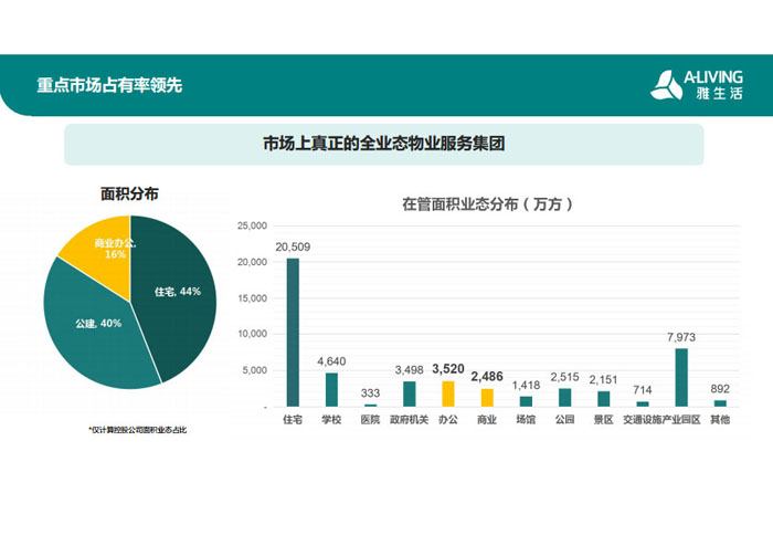 二、全面市場化運作,加速增值服務(wù)發(fā)展 隨著越來越多物業(yè)服務(wù)企業(yè)走向資本市場,物業(yè)行業(yè)之間的市場競爭也愈演愈烈。行業(yè)集中度不斷提升,消費者的需求日愈多元化,面對這樣的發(fā)展浪潮,雅生活集團勇敢跳出原有只依靠承接自建物業(yè)的經(jīng)營模式,開始實施全面市場化運作,通過市場拓展、兼并收購尋求規(guī)模的迅速擴大。 目前,雅生活集團每年市場拓展目標(biāo)2000萬平方米,承接業(yè)態(tài)除主流住宅物業(yè)以外,還包括商業(yè)、寫字樓、旅游地產(chǎn)及酒店等非住宅物業(yè)管理業(yè)務(wù)。憑借26年的高品質(zhì)物業(yè)服務(wù)經(jīng)驗和良好的品牌形象,雅生活集團迅速在拓展市場成為后起之秀。2020年,雅生活集團的市場拓展產(chǎn)值將達到20億。 在兼收并購方面,雅生活集團精準(zhǔn)出擊,成功收購綠地物業(yè)100%股權(quán),這也成為物業(yè)管理行業(yè)的一大盛事。接下來,雅生活集團將繼續(xù)整合最優(yōu)質(zhì)資源,迅速做大做強。 在多種經(jīng)營方面,雅生活集團以業(yè)主需求為出發(fā)點,對標(biāo)優(yōu)秀同行,因地制宜,創(chuàng)新發(fā)展,積極開拓多種增值服務(wù),讓業(yè)主真正體會“驚喜+感動”。