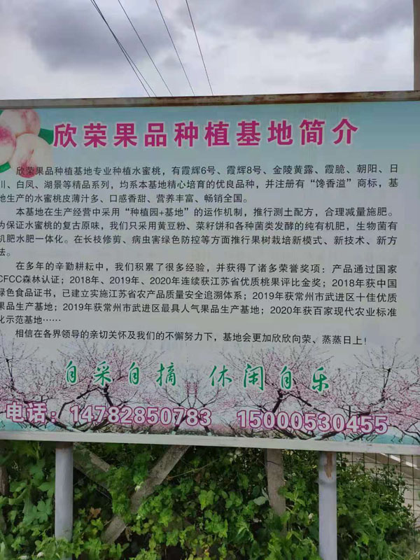 欣榮果品種植基地專(zhuān)業(yè)種植水蜜桃,有霞輝6號(hào)、霞輝8號(hào)、金陵黃露、霞脆、朝陽(yáng)、日川、自鳳、湖景等精品系列,均系本基地精心培育的優(yōu)良品種,并注冊(cè)有“饞香溢”商標(biāo),基地也生產(chǎn)的水蜜桃皮薄汁多、口感香甜、營(yíng)養(yǎng)豐富、暢銷(xiāo)全國(guó)。 本基地在生產(chǎn)經(jīng)營(yíng)中采用“種植園+基地”的運(yùn)作機(jī)制,推行測(cè)土配方,合理減量施肥。保證水蜜桃的復(fù)古原昧。我們只采用黃豆粉、菜籽餅和各種菌類(lèi)發(fā)酵的純有機(jī)肥,生物菌有機(jī)肥水肥一體化。在長(zhǎng)枝修剪、病蟲(chóng)害綠色防控等方面推行果樹(shù)栽培新模式、新技術(shù)、新方去。 在多年的辛勤耕耘中,我們積累了很多經(jīng)驗(yàn),并獲得了諸多榮譽(yù)獎(jiǎng)項(xiàng):產(chǎn)品通過(guò)國(guó)家CFCC森林認(rèn)證;2018年、2019年、2020年連續(xù)獲江蘇省優(yōu)質(zhì)桃果評(píng)比金獎(jiǎng);2018年獲中國(guó)綠色食品證書(shū),已建立實(shí)施江蘇省農(nóng)產(chǎn)品質(zhì)量安全追溯體系;2019年獲常州市武進(jìn)區(qū)十佳優(yōu)質(zhì)果品生產(chǎn)基地;2019年獲常州市武進(jìn)區(qū)最具人氣果品生產(chǎn)基地;2020年獲百家現(xiàn)代農(nóng)業(yè)標(biāo)準(zhǔn)化示范基地…… 相信在各界領(lǐng)導(dǎo)的親切關(guān)懷及我們的不懈努力下,基地會(huì)更加欣欣向榮、蒸蒸日上!