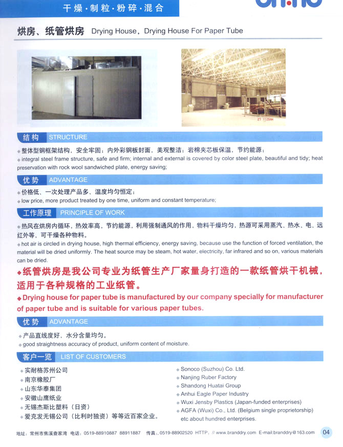 聯(lián)系人:趙琦 電話: 0519-88910887,88911887 傳真:0519-88902520 手機(jī):13815038887 網(wǎng)址:http://www.branddry.cn/ 電子郵件:branddry@163.com 地址: 江蘇省常州市焦溪鎮(zhèn)查家灣 郵編: 213116