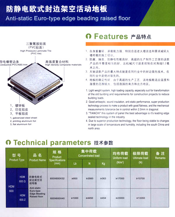 常州天馳活動(dòng)地板有限公司始創(chuàng)于2010年,原身是常州市武進(jìn)區(qū)橫林天馳機(jī)房地板廠,地處橫林工業(yè)園區(qū),交通便捷。 公司主要生產(chǎn)和銷售各種機(jī)房地板,自創(chuàng)立以來,以品質(zhì)第一,信譽(yù)第一,服務(wù)第一的理念堅(jiān)持做全國最優(yōu)質(zhì)量。 防靜電高架活動(dòng)地板是計(jì)算機(jī)行業(yè)發(fā)展起來的新型鋪地材料,隔離了潮氣,靜電灰塵。最重要的是解決了綜合布線問題,無需預(yù)埋管線,可隨時(shí)拆卸,搬移,保證了資訊設(shè)備完整的優(yōu)點(diǎn),適應(yīng)了智能化樓宇中信息自動(dòng)化技術(shù)對(duì)所處環(huán)境的特定要求,避免了廣大客戶的雙重投資,使現(xiàn)代化辦公程度更加高效,辦公場所更加舒適。 公司專業(yè)生產(chǎn)“天馳”系列活動(dòng)地板,符合國家安全要求,種類完備多樣,其中防靜電瓷質(zhì)高架通路地板除具有普通瓷質(zhì)的裝飾和實(shí)用性外,其耐磨,防水,防火功能優(yōu)于其他同類產(chǎn)品,深受客戶歡迎。 公司大力發(fā)展國內(nèi)外銷售業(yè)務(wù),多次中標(biāo)國內(nèi)重點(diǎn)裝飾工程,例:湖南電視臺(tái),寧波縣變電站,鞍山市120急救指揮中心等。 公司將一如既往開發(fā)和制造一流的產(chǎn)品,愿與廣大有識(shí)之士合作發(fā)展,共創(chuàng)美好未來!