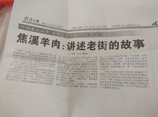 <年洪羊肉>沿著傳統(tǒng)的手藝、獨特的配方,煮制出的羊肉鮮味美(真空包裝),是新老顧客冬令時節(jié)贈送親朋好友之佳品,被評為明都杯武進“十大農家特色菜”。 焦溪羊肉遠近聞名,然而,食客中鮮有關注焦溪羊肉之加工鏈的。如今,焦溪的羊肉經營,從活羊采購,到屠宰、分割、羊雜處理、烹飪、上桌,其分工已經細化。在焦溪從事活羊屠宰的,多數(shù)是江陰南閘人。宰殺后去頭的肥羊,個頭不亞于百斤開外的優(yōu)質肉豬,皮色白凈、肉質鮮亮,經過精心的烹飪,最終成為道道佳肴。