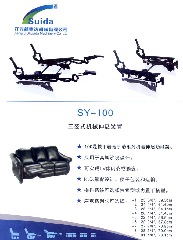 江蘇舒意達(dá)機(jī)械有限公司是一家集研發(fā)設(shè)計(jì),生產(chǎn)制造及銷售的專業(yè)家具五金企業(yè)。公司成立于2006年,座落于風(fēng)景秀麗的江南常州,交通運(yùn)輸?shù)锰飒?dú)厚,為海內(nèi)外客商的來(lái)往交流,洽談和供貨提供了諸多便利,公司占地面積28000平方米,生產(chǎn)廠房面積18000平方米,獨(dú)立的辦公樓,擁有良好的工作環(huán)境。 我們的經(jīng)營(yíng)思理念:堅(jiān)持以人為本,科技為先,用先進(jìn)的設(shè)備,好的工藝流程制造一流的產(chǎn)品。 我們的口號(hào):保證以優(yōu)秀的品質(zhì)服務(wù)于客人,我們的目標(biāo):研發(fā)更多舒適的產(chǎn)品,帶來(lái)生活的享受。 公司誠(chéng)邀海內(nèi)外客商前來(lái)指導(dǎo)洽談,攜手共進(jìn),共造雙贏。