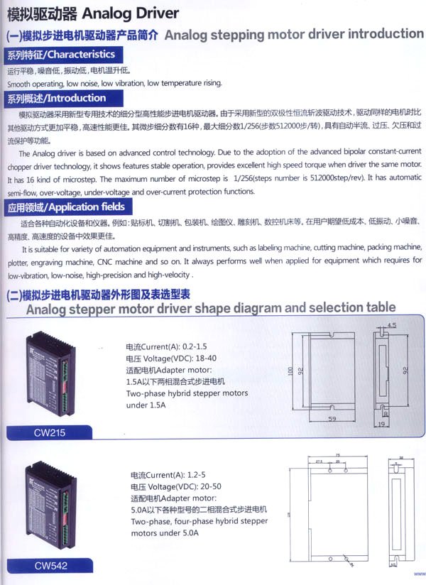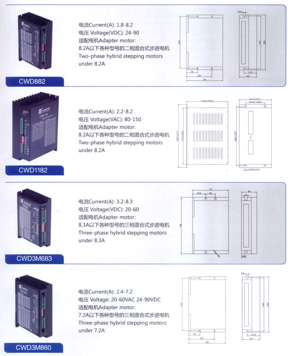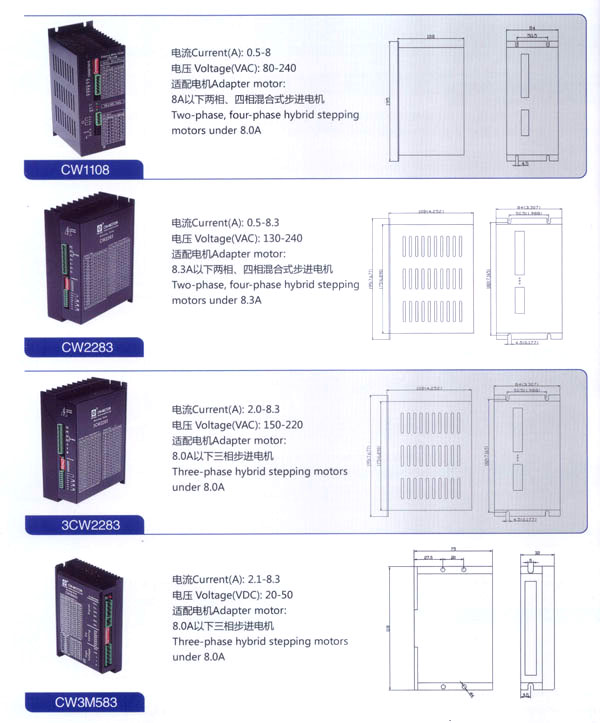 常州創(chuàng)偉電機電器有限公司成立于1995年,是一家專業(yè)從事步進電機及驅(qū)動控制生產(chǎn)、研發(fā)的企業(yè),F(xiàn)已擁有一批富有經(jīng)驗的生產(chǎn)和開發(fā)隊伍。企業(yè)在多年的發(fā)展過程中,為全國各地各行業(yè)提供了大量質(zhì)優(yōu)價廉的步進電機及控制產(chǎn)品。應(yīng)用領(lǐng)域涉及機器人、音樂噴泉、數(shù)控機床設(shè)備、工業(yè)電子自動化設(shè)備、醫(yī)療器械、廣告器材、舞臺燈光設(shè)備、印刷設(shè)備、紡織機械、計算機外部應(yīng)用設(shè)備等等。 公司產(chǎn)品先后通過ISO9001質(zhì)量管理體系認(rèn)證,RoHS認(rèn)證,CE認(rèn)證。公司現(xiàn)擁有全自動繞線機、調(diào)壓式充磁機、萬能外圓磨床、數(shù)控機床等設(shè)備50余臺,固定資產(chǎn)3000萬元,員工總數(shù)200余人,其中技術(shù)人員25人。年生產(chǎn)各類電機100萬臺。依靠齊全的檢測設(shè)備、完善的檢測手段、嚴(yán)格的質(zhì)量標(biāo)準(zhǔn),我們一直致力于提高產(chǎn)品的質(zhì)量和性能。對于每一個客戶我們都提供自始自終的技術(shù)服務(wù)和產(chǎn)品售后服務(wù)。 我公司的主要產(chǎn)品有20BH系列、28BH系列、35BH系列、39BH系列、42BH系列、42BHH系列、57BH圓形系列、57BHH方形系列、60BHH方形系列、86BH圓形系列、86BHH方形系列,以及110BHH系列的四相(二相)混合式步進電。CW60BL、CW63BL、CW70BL、CW92BL系列無刷電機也相繼上市。另外步進電機驅(qū)動器CW215、CW230、CW5045、CW8060、CW6060AC、CW1108以及全新數(shù)字式驅(qū)動器CWD230、CWD556、CWD860H、CW2M2208、CW3M2208和閉環(huán)電機驅(qū)動器CWDS556,CWDS660,CWDS860H,CWDS880L,CWDS1108,CWDS2206等系列也暢銷全球。另外本公司也可對外承接各種步進電機及相關(guān)工控系統(tǒng)的應(yīng)用系統(tǒng)工程。 熱忱歡迎國內(nèi)外客商前來洽談及合作。