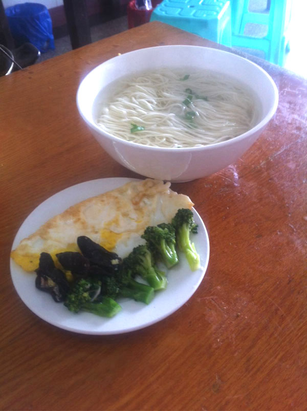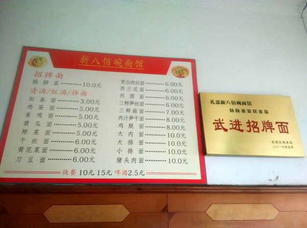 武進(jìn)人愛吃面,已經(jīng)是人盡皆知。而說起武進(jìn)人最愛吃哪種面,估計(jì)十個(gè)中有八個(gè)會(huì)說腸腸面。位于禮嘉鎮(zhèn)上的新八佰碗面館,就是以腸腸面在武進(jìn)面界擁有了眾多粉絲。 比起大部分武進(jìn)的家常面館,新八佰碗面館的門面還是挺大的,寬敞的廳堂里擺放著近10張桌子。中午11點(diǎn)不到,由于還沒到飯點(diǎn),店里的客人并不多。著裝清爽的老板娘顧紅梅正在后面的灶間里忙著炒菜!澳銊e看現(xiàn)在我們店里沒人,再過半小時(shí),人馬上就多起來了。早上9點(diǎn)前,好多人都是站著把面吃完的! 顧紅梅坦言,面館有如此好的生意,著實(shí)有點(diǎn)意外,但也在情理之中。 新八佰碗面館的前身也是一家面館,但是因?yàn)榉N種原因,最終在3年前關(guān)門大吉。“其實(shí)面館的市口很不錯(cuò),但我接手的時(shí)候,前任老板跟我說,一天只能做20斤面的生意!彪m然壓力很大,但顧紅梅表示,從一開始她就對面館充滿信心,“我一直覺得只要用心,沒有做不好的事! 新八佰碗面館的面是老武進(jìn)的做法,一碗面,三種做法,要么紅湯、要么白湯,還有紅湯拌面,翻花樣的是上面的澆頭。每天清晨3點(diǎn)半,顧紅梅就會(huì)準(zhǔn)時(shí)到店里,首先是煮湯底!拔覀兠骛^的湯料頭很足,用大骨頭、老母雞、開洋等足足燉夠3小時(shí)!苯又,就是做各種澆頭。由于一向擅長做菜,因此有很多澆頭都是顧紅梅親自掌勺。新八佰碗面館的澆頭,除了味美,量也是足得讓食客們直呼“老板要虧本了”。“就拿武進(jìn)人最喜歡吃的大肉來說,足足是別人店里的兩倍大。每次我切肉的時(shí)候,我老公總在旁邊念叨,大點(diǎn),再大點(diǎn)!鳖櫦t梅笑著說道。 早上6點(diǎn)不到,面館就會(huì)迎來第一批客人。雖然店里雇了工人,但顧紅梅只要有空,都會(huì)搶著收拾碗筷。“根據(jù)客人們吃的量,我就知道面合不合他們的口味了。有時(shí)看到客人剩的特別多,我就會(huì)拉著問是不是不好吃。只要客人們提到的意見,我肯定一字不落地記下來,然后在以后的制作過程中一一改進(jìn)。對于很多武進(jìn)人而言, 一碗面,裝載的是小日子、小樂活,所以我必須把面做好吃嘍!鳖櫦t梅的如此用心,不由讓記者豎起了大拇指。 就這樣,一開始的20斤面量,一個(gè)月后就增加到了40斤,而現(xiàn)在最忙的時(shí)候,一天要用掉近100斤面。 說起招牌面,顧紅梅指了指墻上的菜單,“喏,寫在那呢,腸腸面!泵媸羌(xì)面,根根柔中帶勁,湯底濃油赤醬,看似很咸,其實(shí)不然,回味恰到好處。大腸處理得很干凈,腸腔里的油花幾乎都被去除了,糯糯的卻不見肥,再加一塊素雞或荷包蛋,武進(jìn)人喜歡的味道,這一碗面里就齊全了。