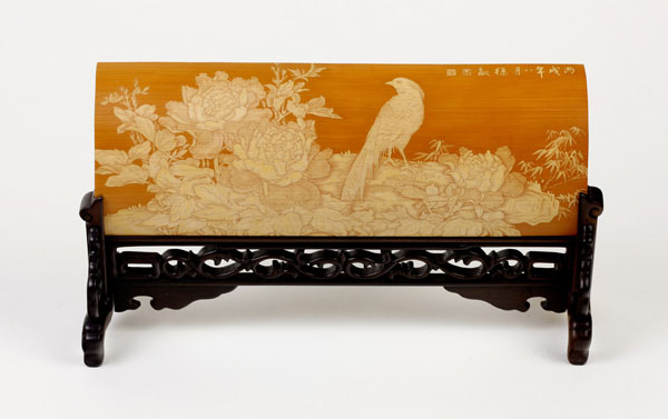 徐敏,一九七四年生于江蘇常州,擅長山水油畫。師從竹刻家范遙青研習竹刻至今有二十余載。其作品受到竹刻權(quán)威鑒賞家王世襄認可,并親筆為她題字褒獎。現(xiàn)為常州市非物質(zhì)文化遺產(chǎn)傳承人。