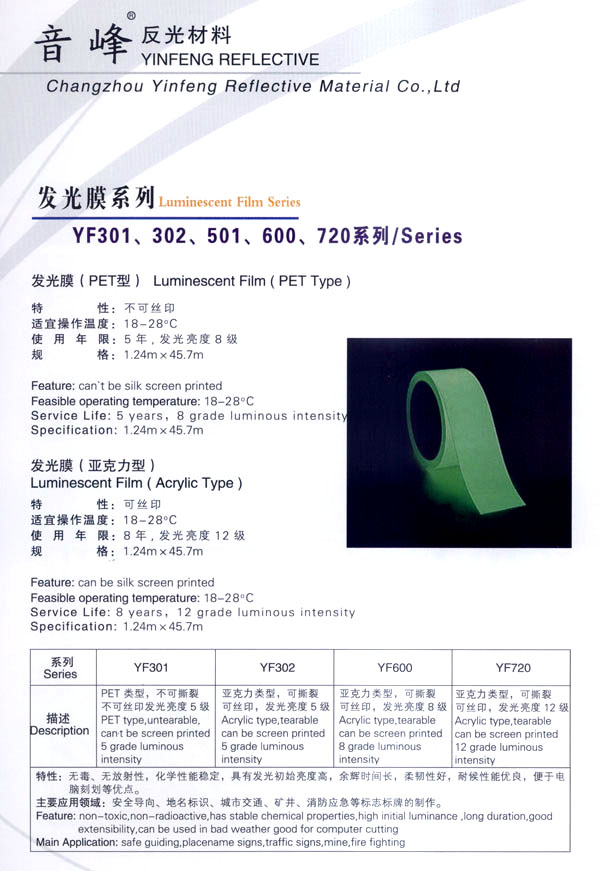 音峰集團是一個多種經(jīng)營的綜合性高科技股份公司,從事反光材料、交通安全設施、絲網(wǎng)印刷、揚聲器、紡織等產(chǎn)品的研制開發(fā)、生產(chǎn)銷售。公司自創(chuàng)立以來,堅持走科技發(fā)展的道路,以滿足客戶需求為公司宗旨,取得了令人矚目的經(jīng)濟效益和社會效益,使公司規(guī)模不斷擴大。 音峰反光材料有限公司是音峰集團下的一個新銳的子公司,主要從事系列反光材料及發(fā)光膜的研制和開發(fā)。公司擁有國內最先進的生活殘設備,最專業(yè)的研制、開發(fā)人員,公司還投入了大量的資金,年產(chǎn)值達1.5億。 公司主生產(chǎn):廣告級反光膜、工程級反光膜、車牌級反光膜、高強級反光膜、廣告級反光雙色條、發(fā)光膜、噴繪反光膜、晶彩格、電信電力反光膜,鍍鋁膜等等..........根據(jù)國家指令法規(guī):反光材料的領域,如公路標志、標牌、標線、礦山、鐵路等......... 反光膜廣泛應用于各種廣告標志牌,公路鐵路的導向牌、指示牌、地名牌、車牌,道路交通標志,物業(yè)小區(qū)標志,臨時施工標志,廣告宣傳、安全防護、高等級公路的各種警示標語,標識牌等。 公司堅持以生產(chǎn)力標準衡量企業(yè)效益和員工業(yè)績,堅持“以人為本,提倡知人、容人、用人、培養(yǎng)人,使企業(yè)具有極強的凝聚力,在激勵的市場競爭中保持旺盛的生命力!笨萍急WC品質,服務完善產(chǎn)品“是我們永遠不變的信念。 隨著世界的發(fā)展,企業(yè)經(jīng)營進入了全球化時代,本著這一共識,企業(yè)憑借自身的技術優(yōu)勢,積極參加國際間合作與競爭,努力拓展國內與國際市場,公司愿與國內外各界朋友在更廣泛的領域攜手合作,共同發(fā)展,共創(chuàng)繁榮。