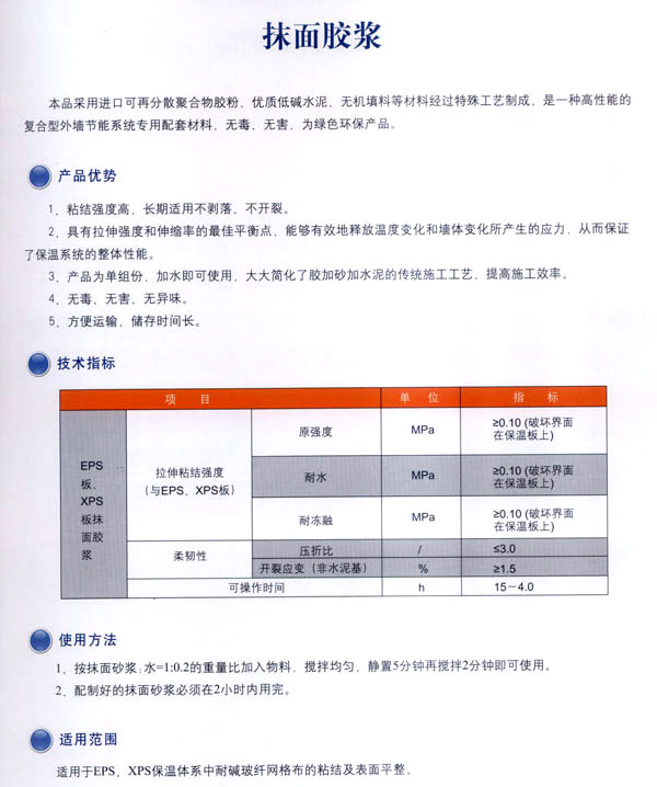 常州市?敌滦徒ú挠邢薰臼且匝兄崎_(kāi)發(fā)、生產(chǎn)、銷(xiāo)售、施工、技術(shù)服務(wù)為一體的化學(xué)建筑材料的專(zhuān)業(yè)企業(yè),通過(guò)與歐洲著 名建筑材料公司和國(guó)內(nèi)權(quán)威科研機(jī)構(gòu)合作,并聘請(qǐng)國(guó)家級(jí)專(zhuān)家為技術(shù)顧問(wèn),開(kāi)發(fā)出適合我國(guó)市場(chǎng)的?礒PS、XPS及聚苯顆粒外墻外保溫節(jié)能系統(tǒng)。 公司的生產(chǎn)線全部采用國(guó)內(nèi)先進(jìn)的電腦控制自動(dòng)化設(shè)備,配備了專(zhuān)業(yè)的實(shí)驗(yàn)中心,并且采用進(jìn)口的可再分散乳膠粉為基料,確保?低鈮ν獗毓(jié)能系統(tǒng)具有性能優(yōu)異、安全可靠,綠色環(huán)保、適用性強(qiáng)的高品質(zhì)特點(diǎn)。 公司開(kāi)發(fā)的\'?低鈮ν獗叵到y(tǒng)\'被列為江蘇省科技成果推廣項(xiàng)目。整個(gè)生產(chǎn)流程依照質(zhì)量體系的要求,實(shí)行嚴(yán)格的監(jiān)控和檢測(cè),為生產(chǎn)優(yōu)質(zhì)產(chǎn)品提供保證。高品質(zhì)的?低鈮ν獗叵到y(tǒng),提供從熱工設(shè)計(jì)、產(chǎn)品開(kāi)發(fā)、生產(chǎn)銷(xiāo)售及工程施工全程服務(wù)的一體化解決方案。 公司本著“綠色環(huán)保、節(jié)約能源、造福人類(lèi)”的理念。用我們一流的產(chǎn)品和優(yōu)秀的服務(wù),打造出一個(gè)個(gè)節(jié)能康居示范工程,為人類(lèi)營(yíng)造出舒適健康的居住環(huán)境。我們?cè)笧橹袊?guó)節(jié)能事業(yè)的發(fā)展積極努力,更上一層樓。 公司組建高效的生產(chǎn)經(jīng)營(yíng)管理模式,設(shè)立專(zhuān)業(yè)技術(shù)服務(wù)機(jī)構(gòu)。配備售后的優(yōu)質(zhì)服務(wù)。實(shí)行原材料、運(yùn)輸、安裝一條龍服務(wù)。經(jīng)本公司施工之后,貴公司可以直接批涂料、裝門(mén)窗、貼瓷磚,保證絕無(wú)任何質(zhì)量問(wèn)題。