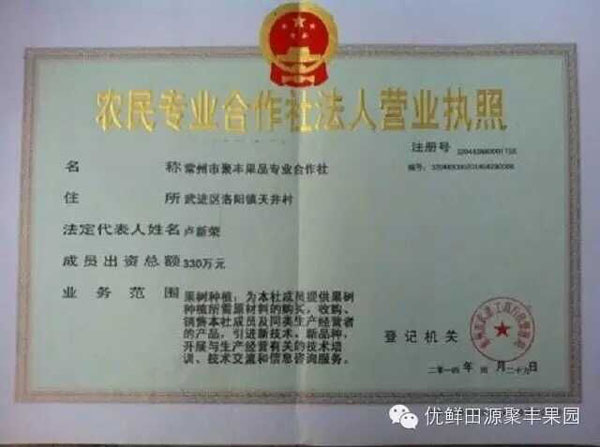 常州市聚豐果品專業(yè)合作社是具有法人資格的農(nóng)民專業(yè)合作經(jīng)濟(jì)組織,成立于2009年,專業(yè)從事水蜜桃、葡萄等時令果品的生產(chǎn)經(jīng)營服務(wù),現(xiàn)有社員103人。合作社經(jīng)營生產(chǎn)總面積1500畝,中心基地面積130多畝。合作社與科研院校建立有緊密的技術(shù)協(xié)作關(guān)系,擁有各類專業(yè)技術(shù)人員15人,擁有各類資產(chǎn)300多萬元,2014年實現(xiàn)銷售2588萬元,經(jīng)營收益680多萬元。合作社建有高標(biāo)準(zhǔn)的水蜜桃、葡萄生產(chǎn)基地,對全社成員及周邊廣大農(nóng)戶開展產(chǎn)前產(chǎn)、中產(chǎn)、后全方位的指導(dǎo)和服務(wù)。采用“合作社+基地+農(nóng)戶”的運(yùn)作機(jī)制,進(jìn)行產(chǎn)業(yè)化經(jīng)營。 合作社生產(chǎn)的水蜜桃、葡萄在2013年通過國家綠色食品認(rèn)證, 2013年合作社生產(chǎn)的“常聚”牌湖景水蜜桃在江蘇省第六屆“神農(nóng)杯”優(yōu)質(zhì)水果評比中獲得了銀獎。2012年合作社被常州市工商局和常州市經(jīng)紀(jì)人協(xié)會評為“常州市優(yōu)秀經(jīng)紀(jì)人”。合作社與農(nóng)業(yè)部南京農(nóng)業(yè)機(jī)械研究所、江蘇省農(nóng)科院、93學(xué)社等多家科研學(xué)術(shù)單位建立有緊密技術(shù)協(xié)作關(guān)系。合作社創(chuàng)新理念強(qiáng),果品生產(chǎn)起點高,帶動范圍廣,運(yùn)作規(guī)范,經(jīng)濟(jì)實力較強(qiáng),擁有豐富的新品種引進(jìn)、開發(fā)實踐經(jīng)驗。