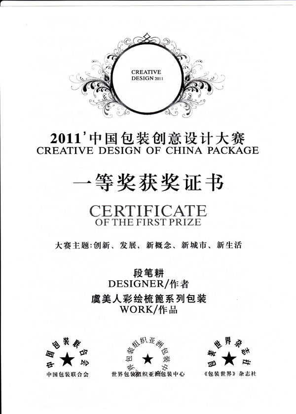 “2011年中國(guó)包裝創(chuàng)意設(shè)計(jì)大賽“,虞美人彩印梳篦系列包裝獲得一等獎(jiǎng);