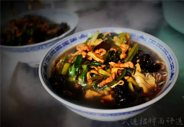 武進(jìn)區(qū)青城面館經(jīng)營面積280平方米左右,主要特色是現(xiàn)炒肉絲,素菜蓋澆面,面館創(chuàng)始人今年63歲的王蘭珍,她對(duì)美食有著高于常人的悟性。她開過饅頭店,開過小飯館,承包過食堂,燒菜、取料樣樣在行,吃過的人常常贊不絕口。 20世紀(jì)初,在跟德興面館的老師傅學(xué)了做面手藝后,王蘭珍萌生了開一家面館的想法,除了可以養(yǎng)家糊口,最重要的是想讓更多人嘗嘗自己的手藝。于是,她在自己的住處擺起了幾張桌椅,面館就算正式營業(yè)了。因?yàn)榧易∏喑菢,王蘭珍干脆取名“青城面館”。 “從早上5點(diǎn)多開始營業(yè),到下午1點(diǎn)多打烊,一天至少要賣掉300多碗面,用掉近160斤面粉。”為何青城面館的面條如此受歡迎,兒媳婦陸偉紅說秘訣在于湯頭和澆頭。湯頭分白湯和紅湯,白湯是由10斤豬骨頭熬制而成,湯色清澈而味道濃郁;紅湯以骨頭湯作底湯,加入茴香、甘草、草果等20多種中草藥,以及糖、醬油等調(diào)味品,鮮而不腥,散發(fā)出陣陣香味。 和一般面館事先燒制好澆頭,放在盆里供客人選擇不同,青城面館的澆頭都是一份份現(xiàn)炒的,特別講究食材的新鮮。就拿暢銷的肉絲蔬菜紅湯面來說,要先起猛火,把肉絲、木耳、蘑菇、青菜等食材放一起煸炒至香,然后澆在撈起的面條上。一碗面出來,現(xiàn)炒的澆頭與面條融合,味道香郁至極。 遙觀人的早晨,醒得有些早。對(duì)很多遙觀人來說,美好的一天是從青城面館開始的。那一碗碗現(xiàn)炒的蓋澆面,筋道爽滑、醬香味濃,溫存著他們的胃與記憶,帶來刻進(jìn)骨子里的家鄉(xiāng)味道。