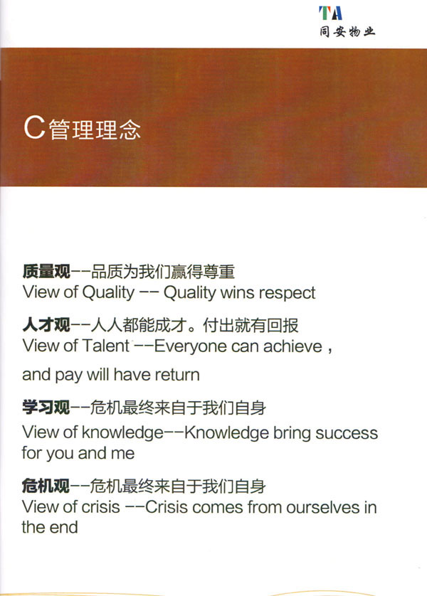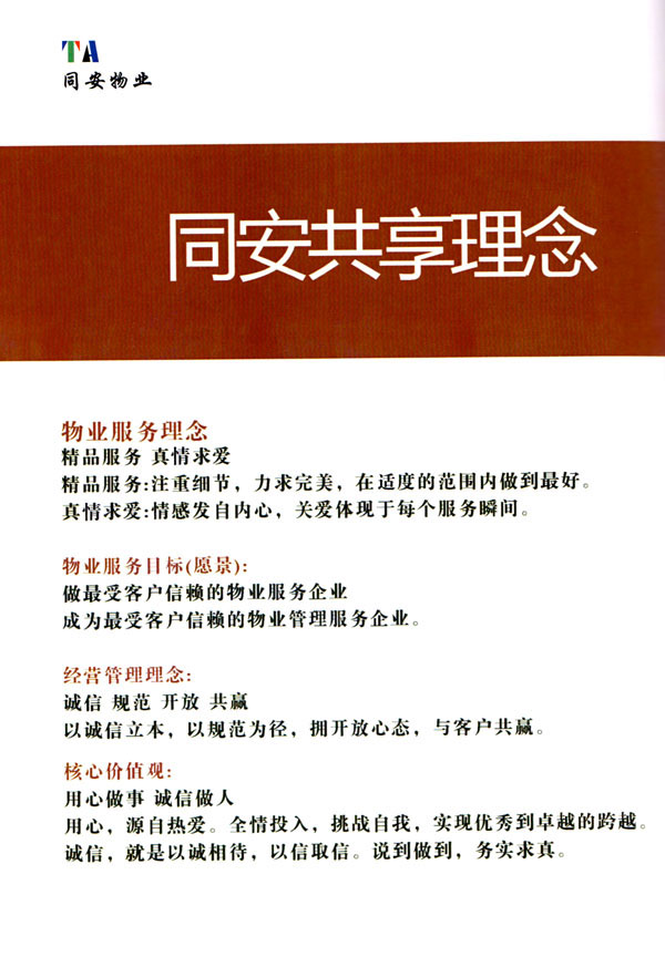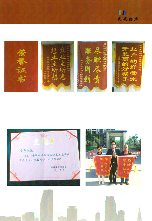 常州市同安物業(yè)管理有限公司注冊1999年,發(fā)展至今已有多年歷史,本公司坐落于美麗的龍城常州,秉承“融聚無限未來”的核心理念,融專業(yè)認(rèn)才,匯優(yōu)質(zhì)資源以”專心,細(xì)心,耐心”的服務(wù)態(tài)度,為客戶打造“安心,順心,稱心”的服務(wù)感受。 公司始終以“打造中國最值得信賴和最值得尊重的物業(yè)管理服務(wù)集成商”為愿景自我鞭策,不斷前行。同安物業(yè)以客戶滿意為終極目標(biāo),不斷加強(qiáng)”崗位資格認(rèn)證能力,人才招聘與職業(yè)化培訓(xùn)能力,產(chǎn)品策劃與管理設(shè)計能力,品質(zhì)監(jiān)督與管控能力,技術(shù)更新與運(yùn)營優(yōu)化力“五大專業(yè)能力的培養(yǎng)和提升,實(shí)現(xiàn)“精品化管理,專業(yè)化服務(wù)”。 公司發(fā)展至今,員工總數(shù)近千余人,大專以上學(xué)歷200多人,中高級技術(shù)人員160人,維修人員140人,物業(yè)管理師80名,公司接管面積達(dá)3100000多平方米,設(shè)涉及住宅小區(qū),別墅,大型游樂場,公園,醫(yī)院,廠區(qū),商業(yè)等。公司的工作管理逐步導(dǎo)入ISO9001質(zhì)量體系和ISO4001環(huán)境管理體系和GB/T28001職業(yè)健康安全管理體系,嚴(yán)格按照質(zhì)量體系的標(biāo)準(zhǔn)執(zhí)行。